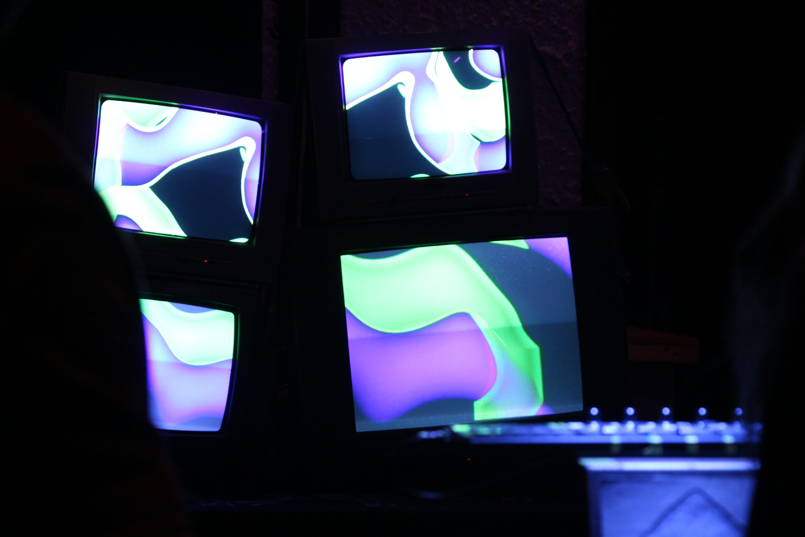 This project explores the creation of live visuals through a custom vvvv patch with MIDI control. Designed for performances, exhibitions, or installations, the system can be used with any display or projection setup. For the first presentation of the installation, the visuals were mapped across four stacked tube TVs, combining digital complexity with analog character, and fully controlled via a Korg nanoKONTROL 2 MIDI controller.